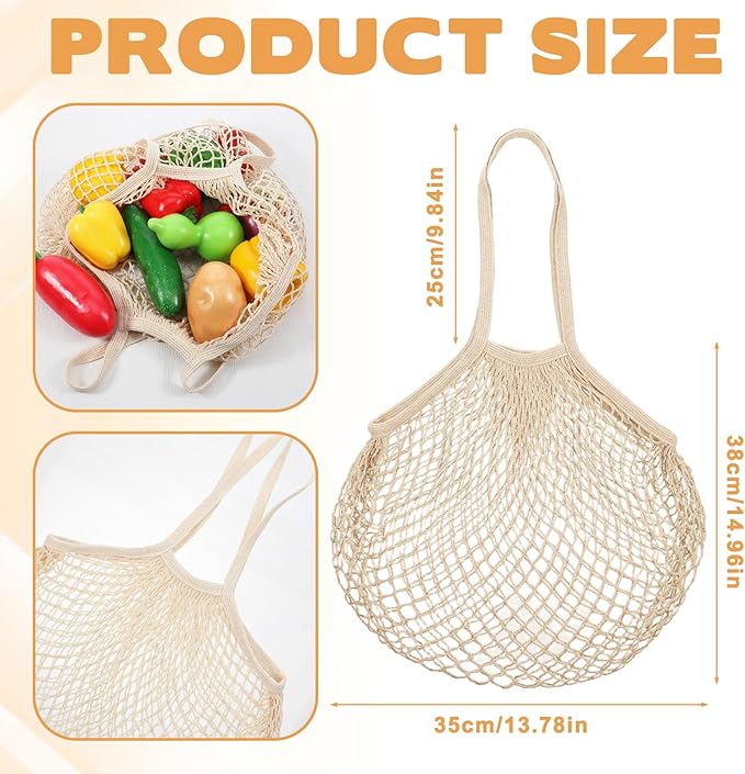 - Durable and Comfortable: Made with reliable sewing technology, our net bags are built to last. The reinforced long handles ensure comfortable carrying, while the breathable mesh keeps your produce fresh and crisp