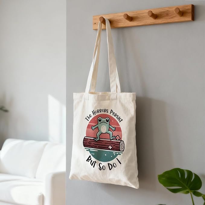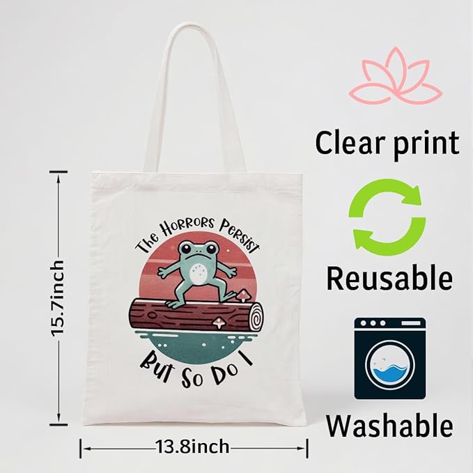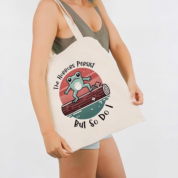 Canvas Tote Bag for Women, Funny Frog Shoulder Bags, Inspirational Canvas Totes to Work Traveling, Christmas Gifts to Friends and Family, Holiday Gift Bags for Wrap Storage