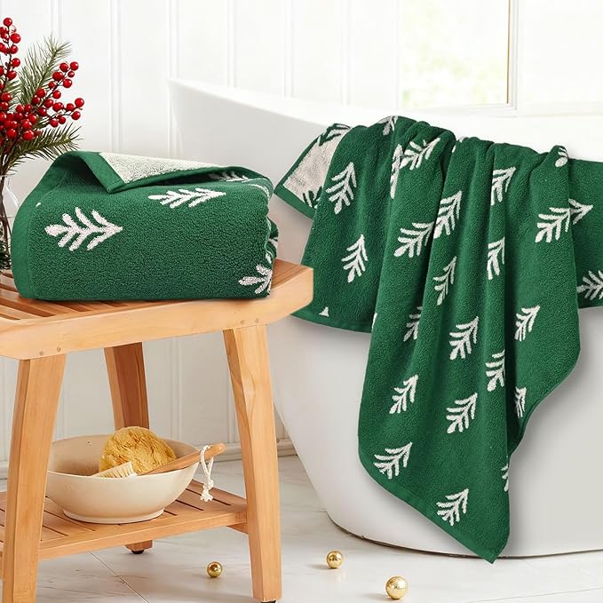 - Festive & Functional: Green towels for bathroom combine everyday practicality with seasonal style. Use them as cute bathroom towels, shower towels, guest towels, travel towels, or as holiday décor accents to refresh your home