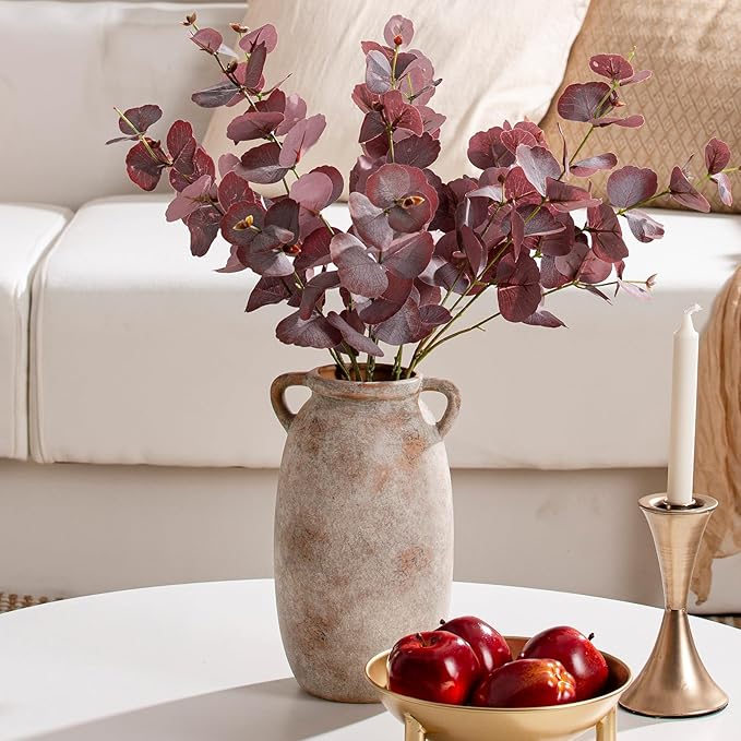 Ceramic Flower Vase 12 inch Farmhouse Rustic Vase Decorative Pottery Terracotta Tall Vases for Home Decor Table Mantle Fireplace Living Room Bathroom Wedding Centerpiece (Large-Terracota)