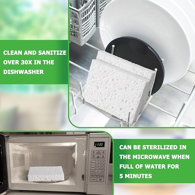 - MATERIAL: Made from compressed cellulose sponges derived from recycled, bio-based materials for effective cleaning performance. Ideal for washing dishes, wiping counters, and general household cleaning tasks with non-scratch cleaning action.
