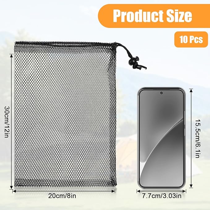 - Generous 10-Piece Practical Set: This value pack of 10 identical mesh drawstring bag units ensures you always have spares for multiple uses. Never worry about searching for bags when organizing sports gear, laundry, or travel essentials. The complete set meets all your simultaneous storage needs.