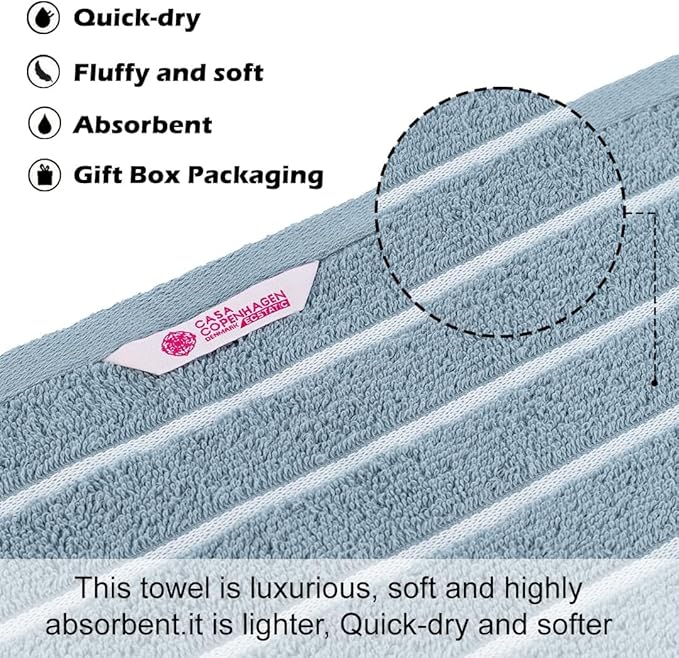 CASA COPENHAGEN Ecstatic 6 Pieces Towel Set- Dusty Blue, 600 GSM 2 Bath Towel 2 Hand Towel 2 Washcloth, Designed in Denmark Made of Soft Egyptian Cotton for Bathroom, Kitchen & Shower