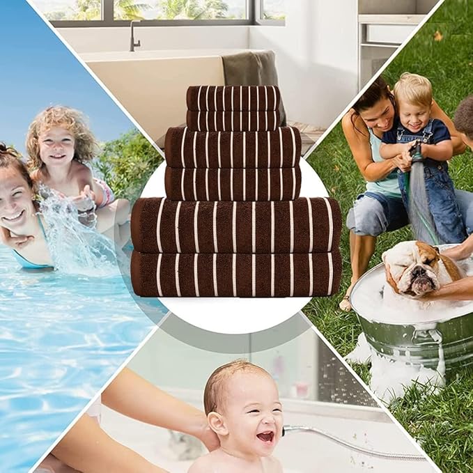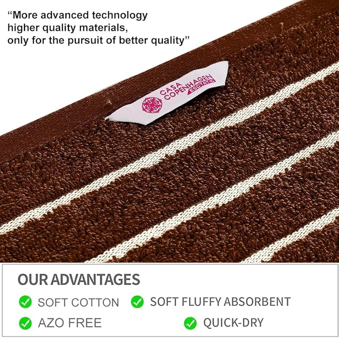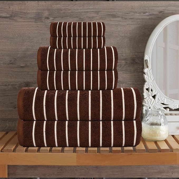 CASA COPENHAGEN Ecstatic 6 Pieces Towel Set- Brown, 600 GSM 2 Bath Towel 2 Hand Towel 2 Washcloth, Designed in Denmark Made of Soft Egyptian Cotton for Bathroom, Kitchen & Shower