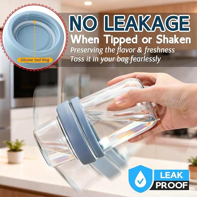 - Durable & Leak-Proof: As reliable small glass jars with lids, these containers features airtight silicone seals on both compartments—locking in freshness and ensuring leak-proof performance. Crafted from sturdy glass, the oatmeal cups are durable enough to toss in your bag without worry, no spills or mess