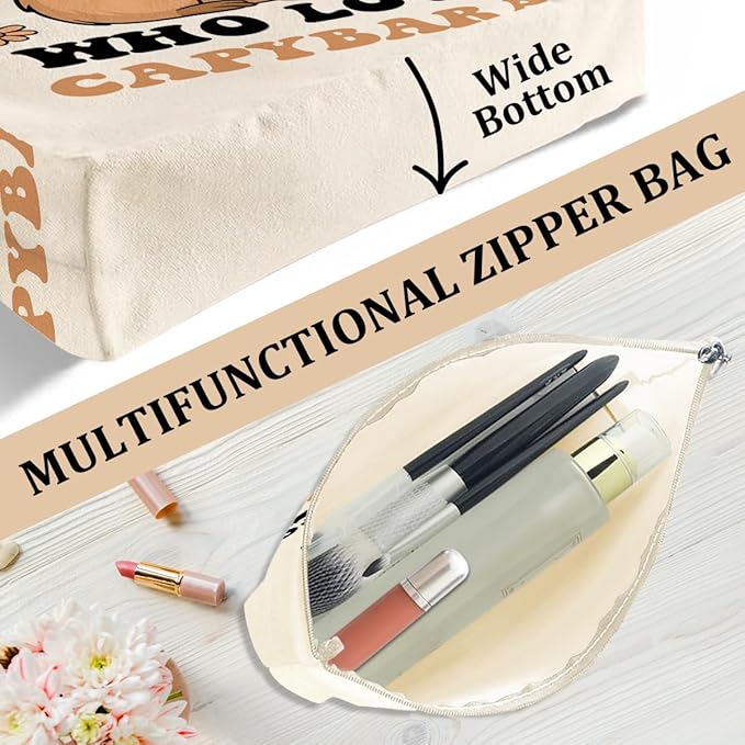 A Girl Loves Capybaras Capybara Gifts, Cute Capybara Stuff Accessories Canvas Tote Bag Makeup Cosmetic Bag Beach Bags for Women Girls Teacher Sister Birthday Weekender Graduation Christmas Easter
