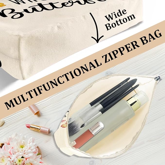 A Girl Loves Butterflies, Butterfly Decor Stuff Accessories, Butterfly Gifts for Women, Cute Canvas Tote Bag Makeup Bag for Women Friend Birthday Weekender Wedding Beach Shopping Mothers Day Christmas