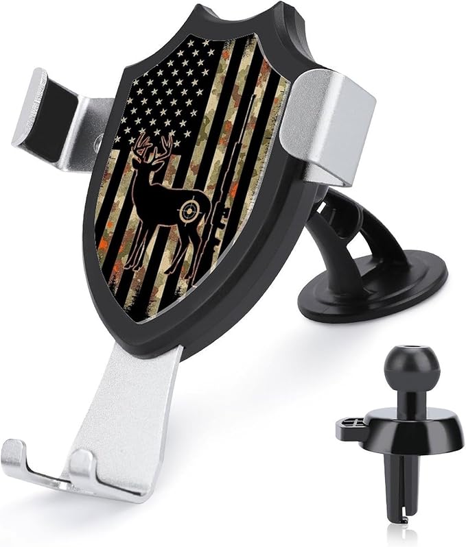 Universal Hands Free Automobile Cell Phone Holder, Phone Mount for Car Dashboard Air Vent Windshield Camouflage Hunting Deer Camo American Flag