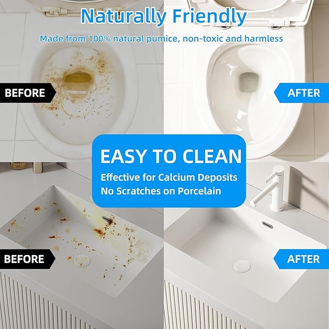 - Efficient Toilet Cleaning: The toilet pumice stone brush effectively removes stubborn stains, limescale, and mineral deposits inside toilets. It delivers the hard-cleaning power you need while being safe on porcelain enamel. The cleaning process is simple, convenient, and highly effective.
