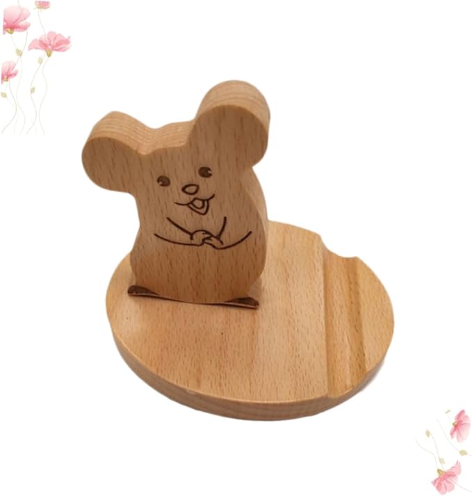Wooden Desktop Phone Holder Cartoon Mouse Design Portable Stand for Smartphones Tablets Sturdy Ergonomic Viewing for Office Kitchen Nightstand
