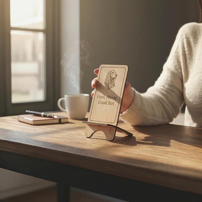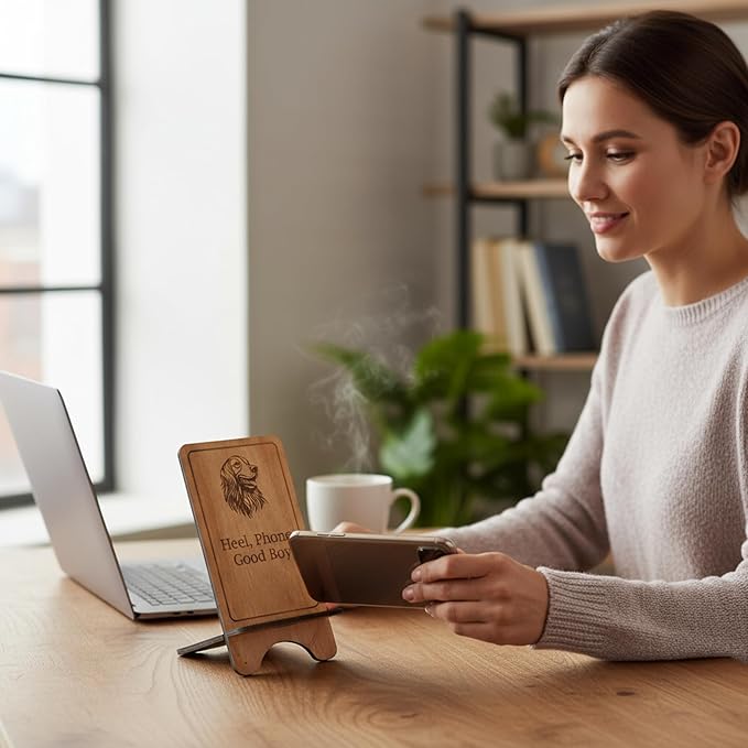 Design Your Own Phone Stand Personalized Wooden Holder Custom Pet Name Engraved Handmade Desk and Home Accessory Gift (Good boy)