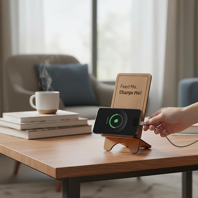 Design Your Own Phone Stand Personalized Wooden Holder Custom Pet Name Engraved Handmade Desk and Home Accessory Gift (100% Hug)