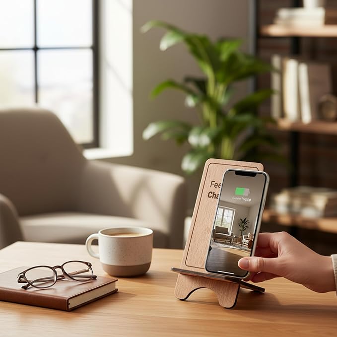 Design Your Own Phone Stand Personalized Wooden Holder Custom Pet Name Engraved Handmade Desk and Home Accessory Gift (Feed me Charge me)