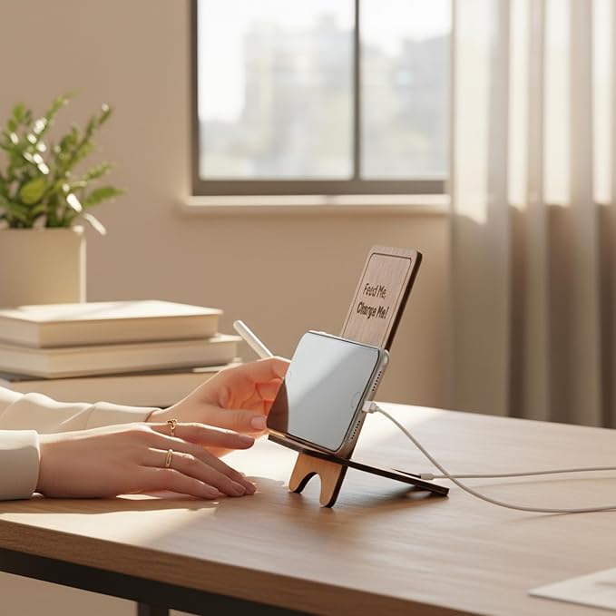 Design Your Own Phone Stand Personalized Wooden Holder Custom Pet Name Engraved Handmade Desk and Home Accessory Gift (Please Recharge)