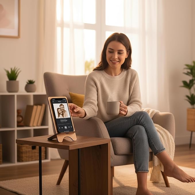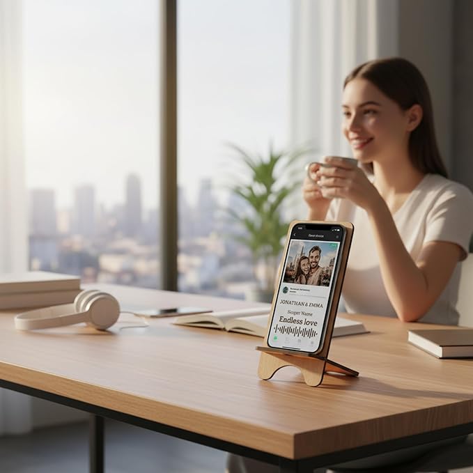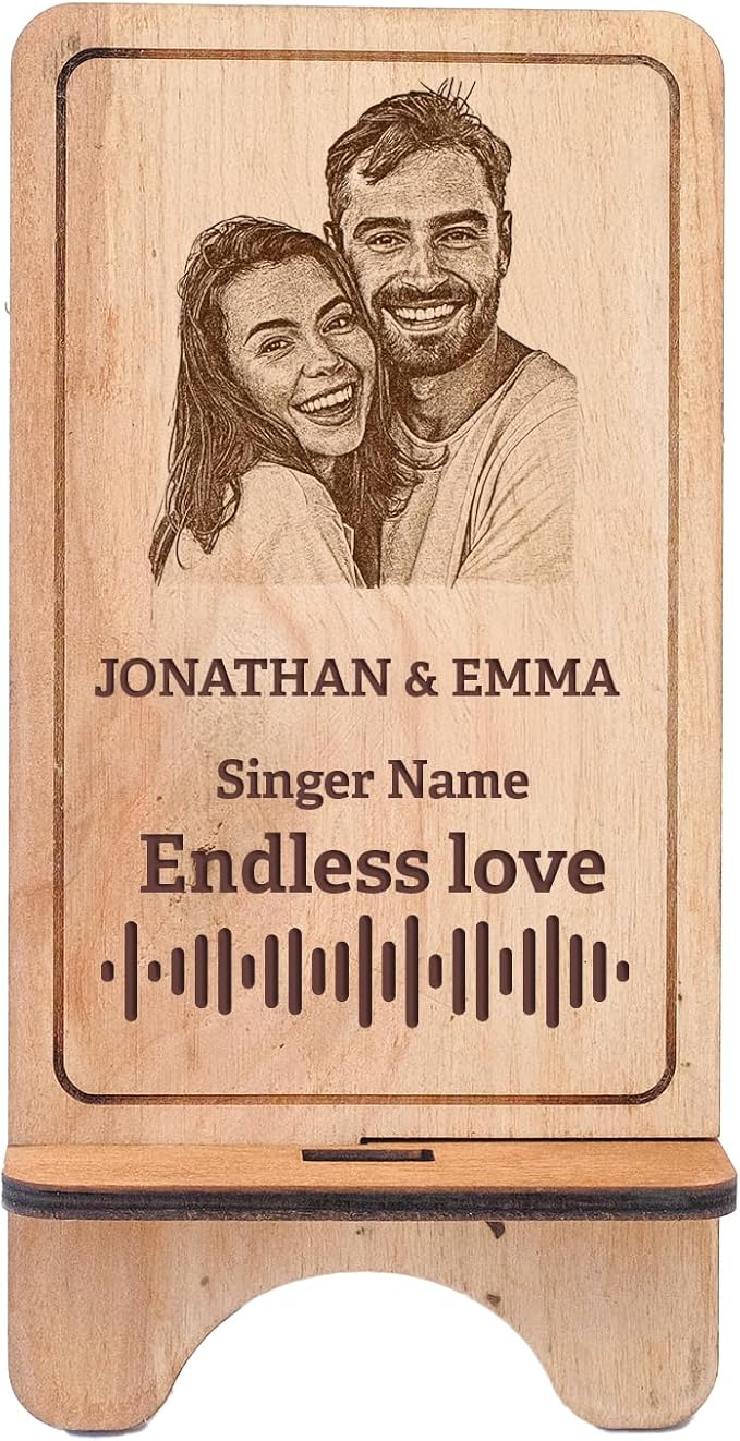 Design Your Own Phone Stand Personalized Wooden Holder Custom Pet Name Engraved Handmade Desk and Home Accessory Gift (Spotify Version with Custom Photo)