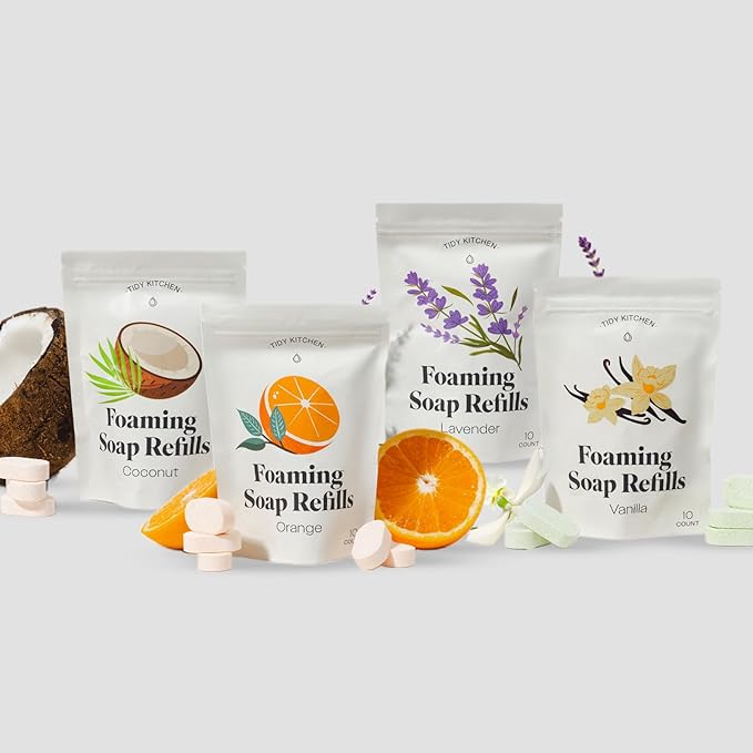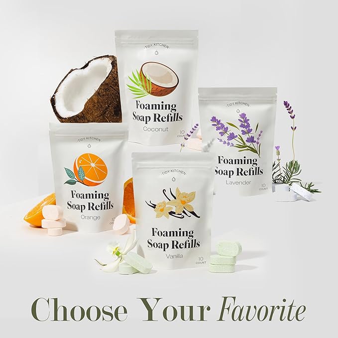 - CONVENIENT FOAMING HAND SOAP REFILLS: Includes 10 soap tablets that easily dissolve in warm water, turning your dispenser into a luxurious foaming hand soap solution in just 25-30 minutes.