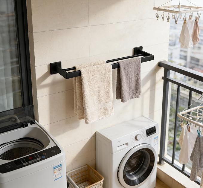 - Premium & Durable Material: Crafted from high-quality SUS 304 Stainless Steel, this towel bar is built to last. It features excellent corrosion and rust resistance, ensuring long-term reliability even in humid bathroom and kitchen environments. The matte black finish is scratch-resistant and won't fade or peel.