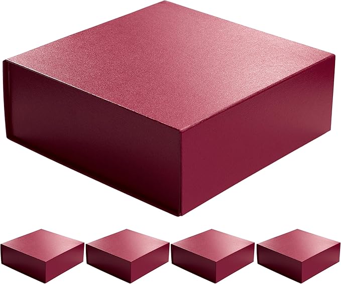 CECOBOX - Gift Boxes with Lids for Presents 8"x8"x3.1" - Matte, Collapsible Magnetic Closure Gift Box - Groomsmen & Bridesmaid Proposal Boxes, Wedding, PR, Birthdays, Holidays (Scarlet Leatherette)