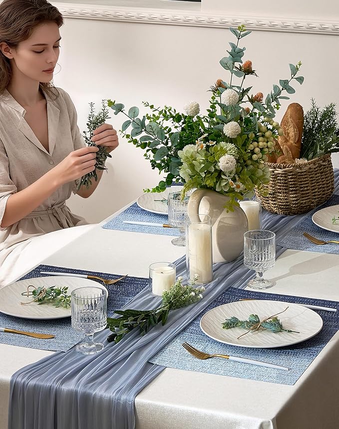 - Elegant and Practical Design: With a luxurious vinyl woven texture, precision cutting, and heat-trimmed edges, our double-sided placemats offer a sophisticated and practical solution. They provide a non-slip surface, resist fading, and are easy to clean, elevating your dining experience