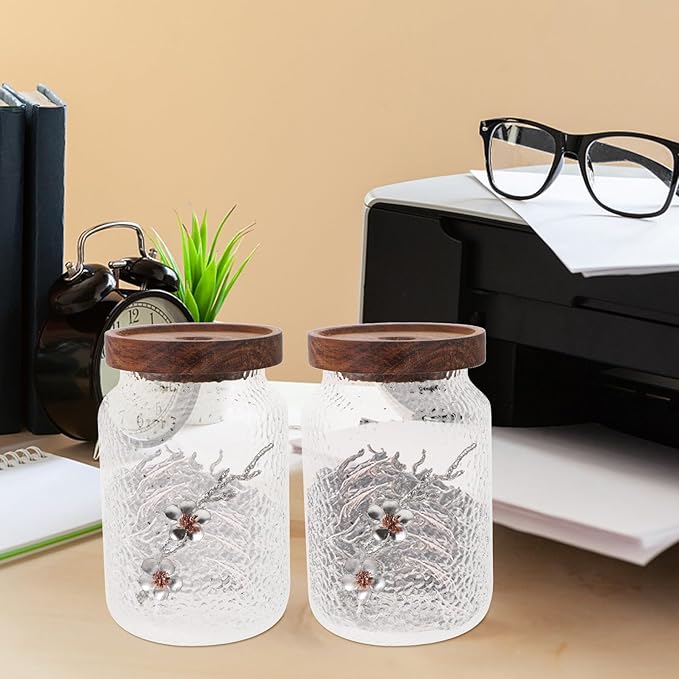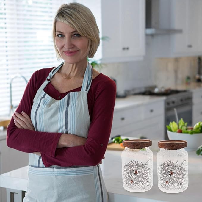 2pcs Glass Sealed Storage Jars with Removable Lids Airtight Food Canisters for Tea Cereals Spices Sugar Flour Pantry Organization