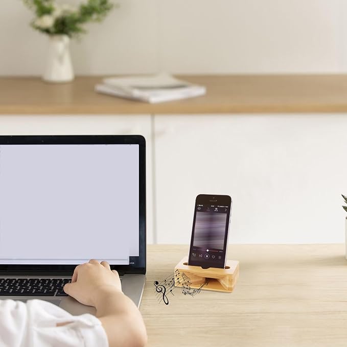 - Hands-Free Viewing wooden phone holder speaker provides stable support for smartphones, allowing comfortable hands-free viewing of videos, calls, or content at desks or bedside tables
