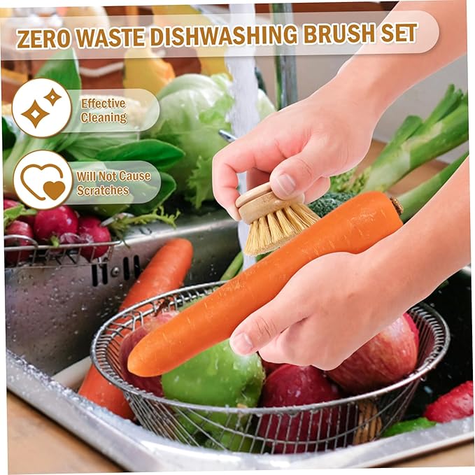 - Complete Cleaning Set: This wooden dish brush includes 4 replacement heads made from natural sisal fibers for extended use.