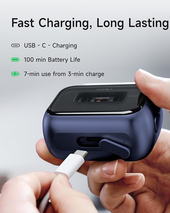 - [Long Battery life & Fast Charging] Enjoy up to 100 minutes of battery life with USB-C fast charging. A 3-minute quick charge powers up to 7 minutes of use. The compact, pocket-sized design with Travel Mode prevents accidental activations, making it ideal for travel.