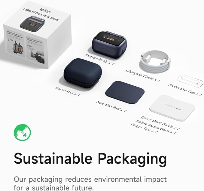 - [What's Included] Shaver Body x 1, Shaver Head x 1, Travel Pod x1, Non-Slip Pad x 1, Protective Cap x 1, Charging Cable x 1, Quick Start Guide x 1, Safety Instructions x 1, Usage Tips x 1