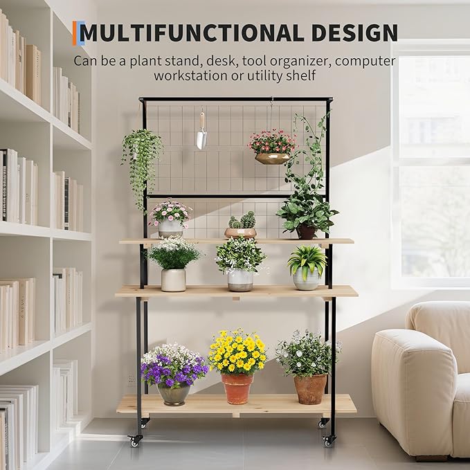 - Remarkably Strong 200LB Capacity & Multi Functional Design:Don’t let its elegant look fool you. Engineered with a robust metal frame and solid wooden shelves, this heavy duty plant stand supports up to 200 pounds total weight. Beyond being the perfect plant stands indoor for your pots and planters, it effortlessly doubles as a stylish side table, a compact desk, a handy tool organizer, or a functional utility shelf in your garage or workspace.