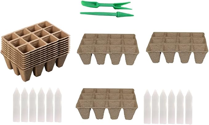 Biodegradable Plant Nursery Cups with Labels and Seedling Starters Plant Starting Pots for Vegetable Seedlings and Cuttings Gardening Starter Kit for Home and Nursery Use